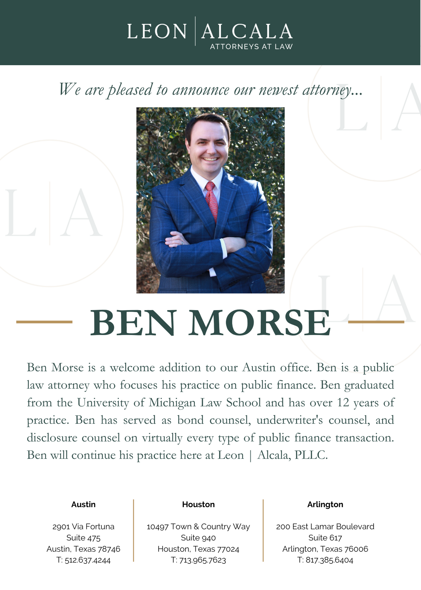 some expansive and arguably abusive document requests. Additionally, if the requestor fails to respond, the request is considered to be withdrawn by operation of law after 30 days. Should any questions arise regarding responding to or compliance with the Public Information Act, please feel free to contact Leon Alcala, PLLC.