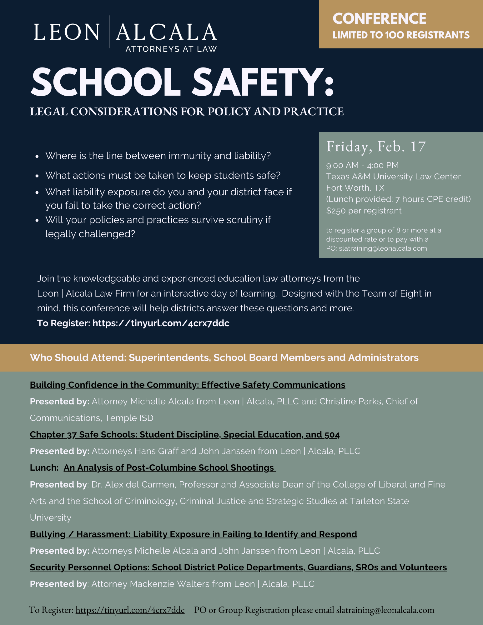 Please Email slatraining@leonalcala.com for